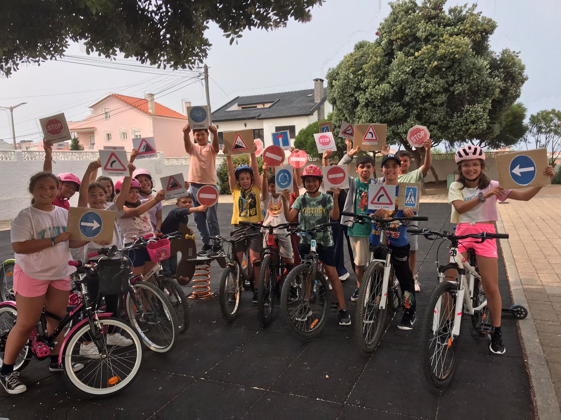 Aula de Educação Rodoviária, dinamizada pela professora Patrícia. As crianças adoraram. 🚲